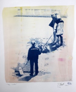 Lithographien (Kugelschreiber auf Stein), handcoloriert, 45 x 35 cm, ohne Rahmen, 5 Unikate