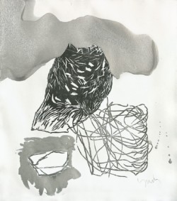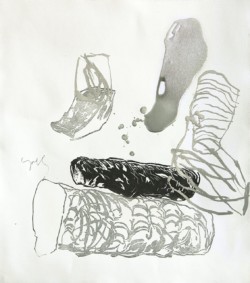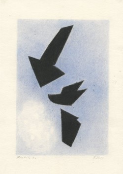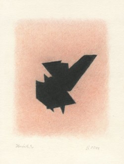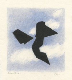 Kohle auf Buntstift, 30 x 18 cm, mit Rahmen 40 x 30 cm, 9 Unikate, 3 x blau, 3 x rot, 3 x grün