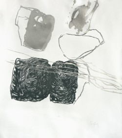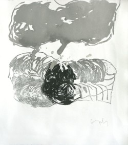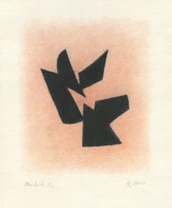 übermalter Holzschnitt, Öl, Aluminium auf Bütten, 47 x 42 cm, mit Rahmen 74 x 58 cm